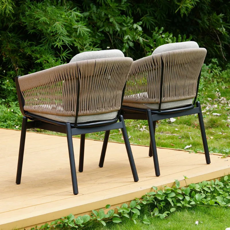 Cool, breathable rope seats: 300g/m² Textilene rope is woven tightly into the chair seats and backrests—air flows through freely, so you won’t stick to the chair on 35℃ days. It’s also tough: anti-tear fabric resists snags from kids’ toys or pets, and UV stabilizers keep the rope’s natural color from fading (90% color retention after 3000-hour sun tests).